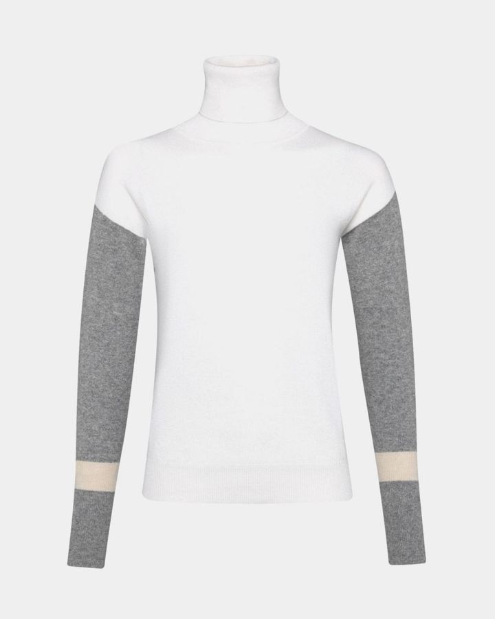 Водолазка свободного кроя из тонкого шелковистого кашемира – идеальный вариант для повседневного лука. В ней комфортно и тепло даже в сильные морозы, при этом кашемир очень мягкий и практически не ощущается на теле. Шерсть породистых горных коз обработали вручную, используя технологию, которая позволяет так переплетать пряжу разных оттенков, чтобы изделие получалось цельным, с минимумом швов.
