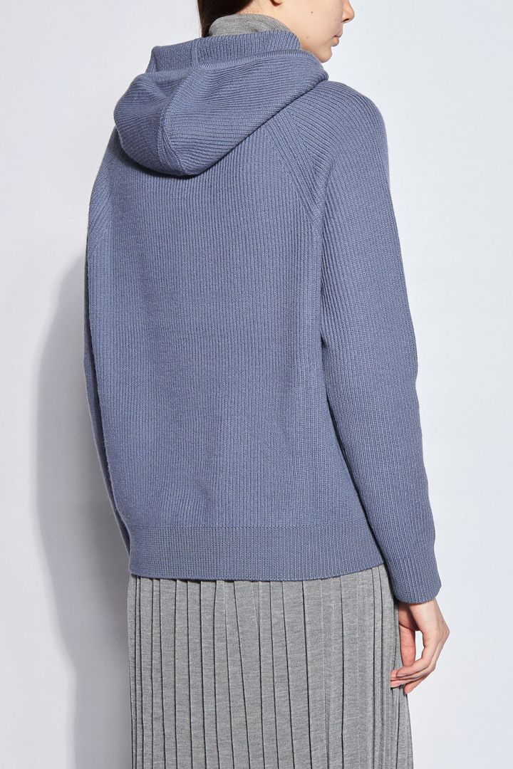 Приглушенный синий цвет этого худи выглядит невероятно благородно, создавая интеллигентный и дорогой лук. Модель от MAX MARA LEISURE будет отлично сочетаться как с брюками, так и длинными юбками и платьями. Худи с капюшоном на завязках, что добавляет образу некоторой расслабленности.